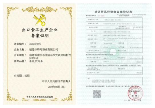 君子藏器于身,待时而动,有了中华人民共和国古雷海关的批准证明,徐聘号生产的好茶终将迈出国门,让各国人民爱上中国好茶。